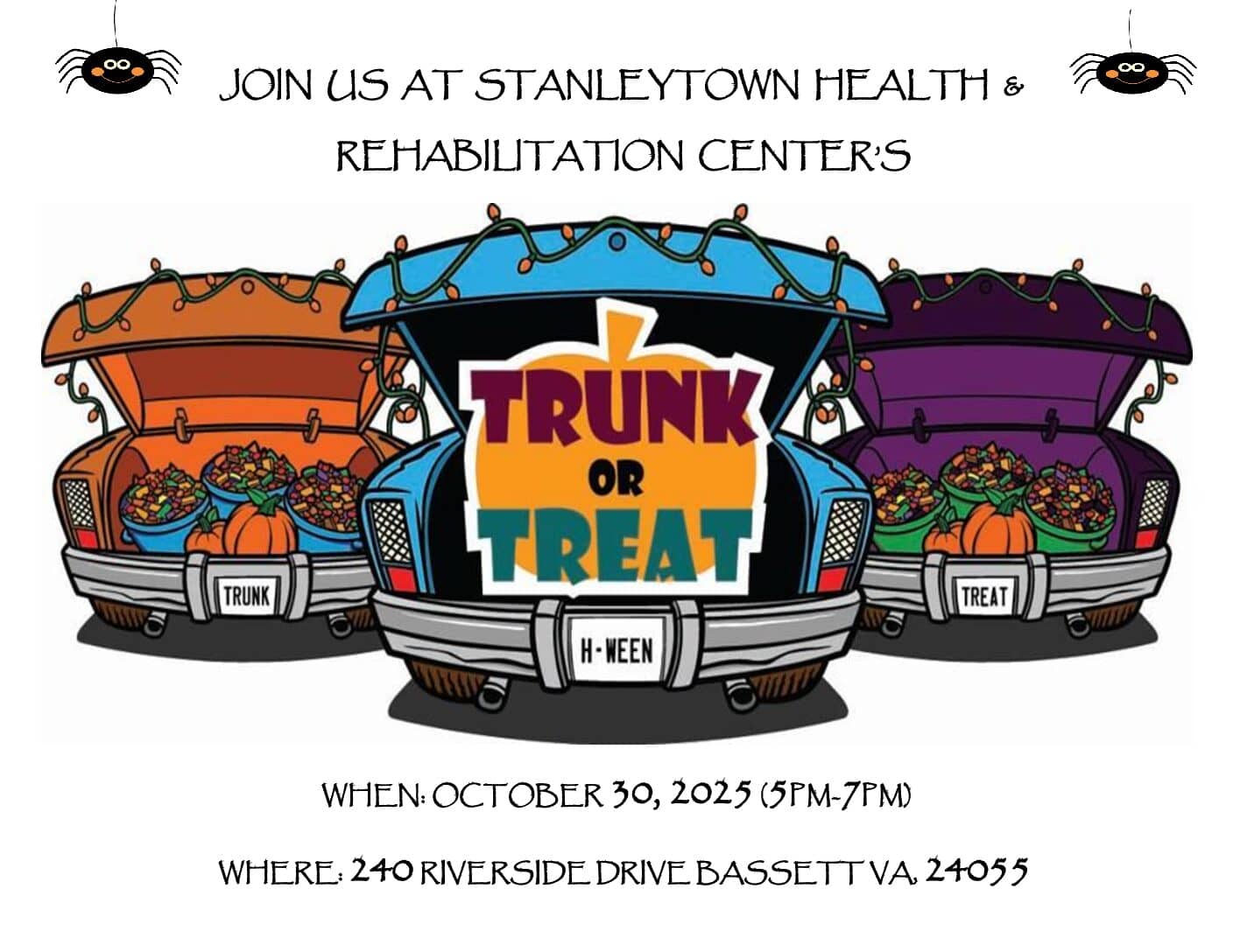 Bring the whole family for a fun and safe evening filled with decorated trunks, candy, and community fun. Kids can dress up in their favorite costumes, and everyone is welcome to enjoy this family-friendly event!